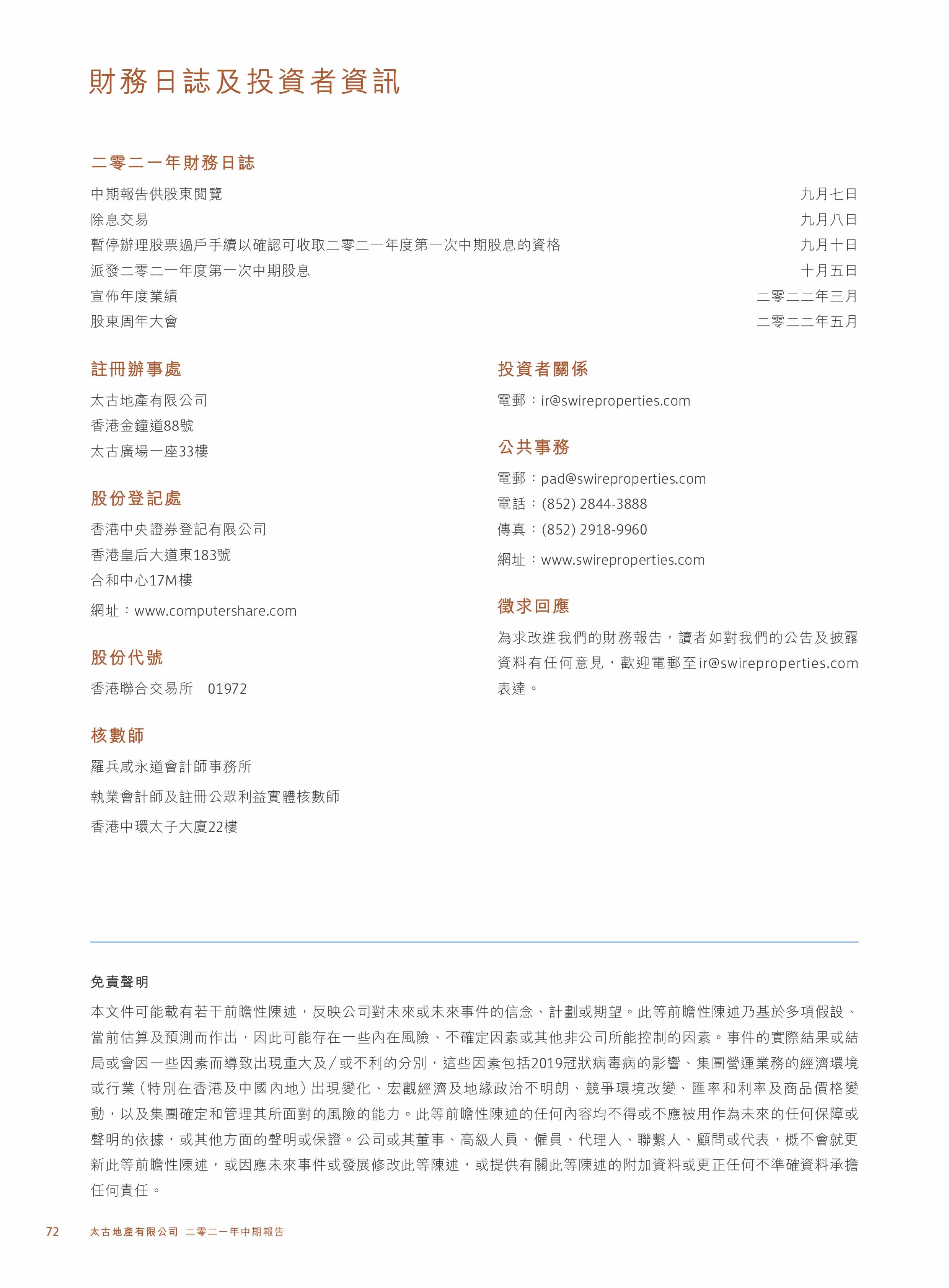 (ii) 將閣下的姓名及聯絡方式提供給:(a)任何促銷標的類別的提供商(無論是太古地產集團內部的或外部的),(b)太古地產集團的商戶及電話中心,(c) 太古地產集團任何成員,及/或(d)促銷或研究服務提供商,以使他們能夠向閣下發送有關上述促銷標的類別的資料。此類資料可透過電郵、信函、傳真、電話或 其他方式發送給閣下。
